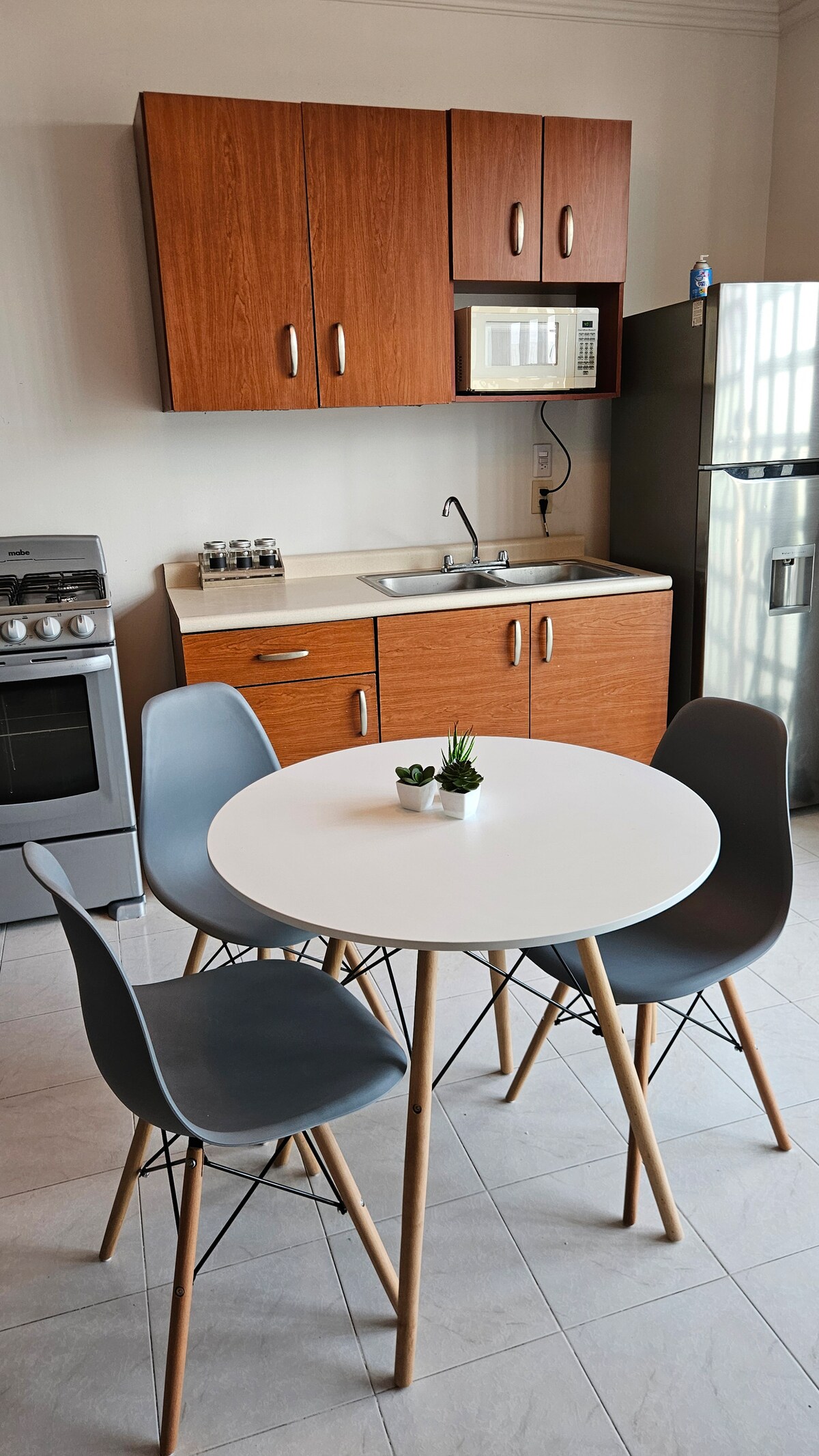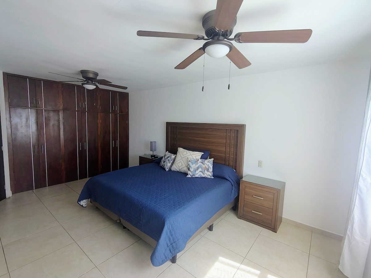 Third-floor apartment, One Three Located 10 minutes from the Historic Center and Shopping Centers. Living room Dining Room Kitchen equipped with grill (stove), refrigerator, microwave, coffee maker. Backyard with laundry Two queen size beds A full bathroom Private parking lot for one car Equipped with air conditioning and internet Self check-in Meeting area with prior authorization