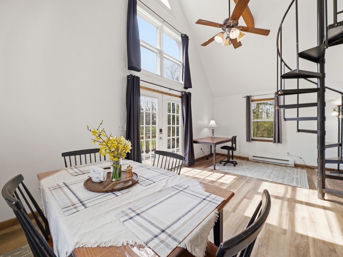 Welcome to Camp Dandelion Nestled in the trees just 2 minutes from Cowans Gap State Park, this 2BR, 1BA cabin blends rustic charm with comfort. At 850 sq ft, it’s ideal for couples, families, or solo travelers. Unwind on the screened porch, read on the deck, or stargaze by the fire pit. Spend days hiking, swimming, or fishing at Cowans Gap Lake, then cozy up by the wood-burning fireplace. With Whitetail Ski Resort - 30 minutes away, the cabin delivers year-round adventure and relaxation.