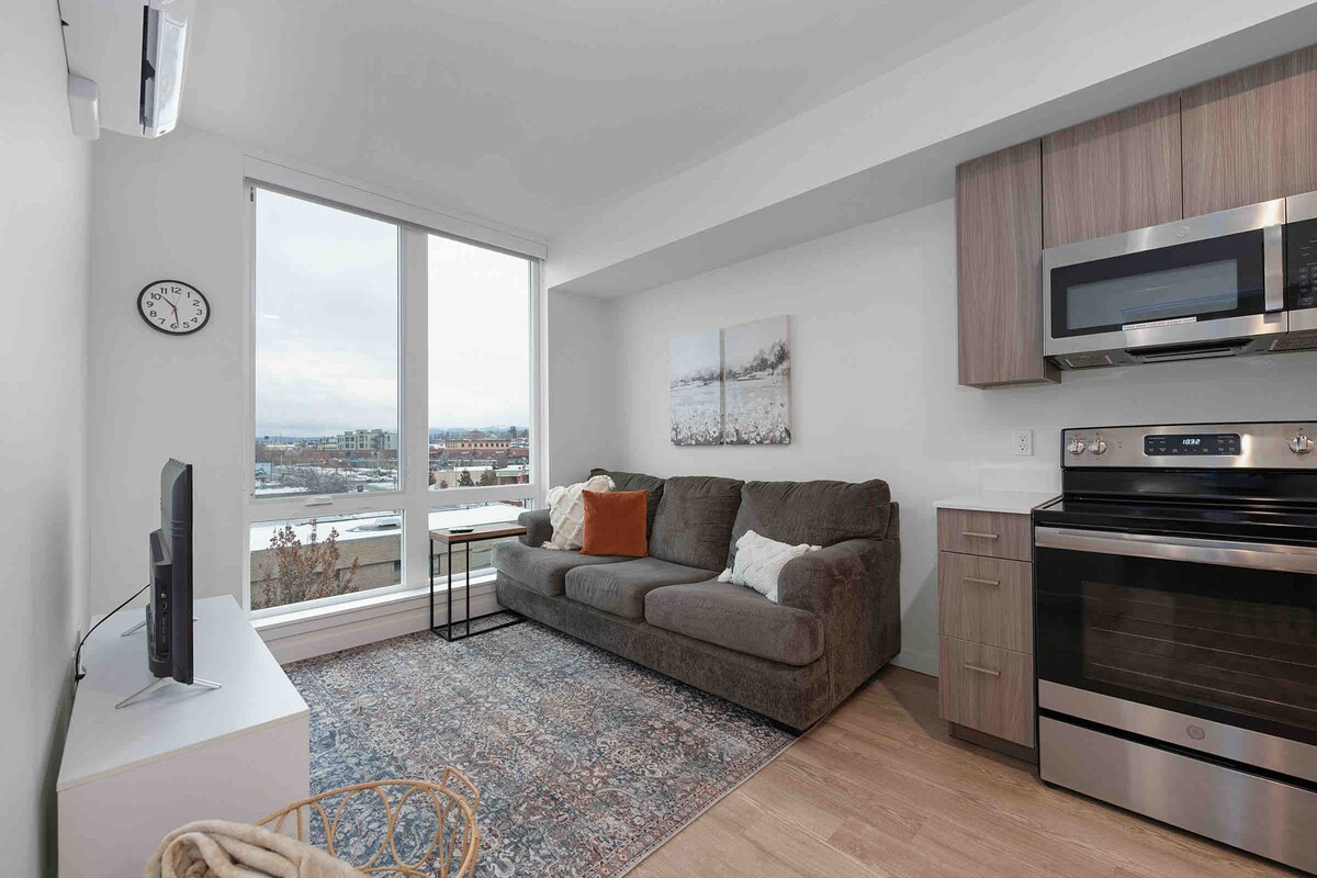 Experience Spokane in style in this elegant 2-bedroom, 2-bathroom apartment with AMAZING views! Located within a short walk to Downtown Spokane & Riverfront Park. The newly rennovated apartment includes an en suite Queen bedroom, open concept living space and a 2nd Queen bedroom and bathroom. The stylish apartment comfortably sleeps 4-perfect for traveling professionals, friends and family alike. Professionally designed and fullly stocked ensures a great stay in beautiful Downtown Spokane.