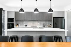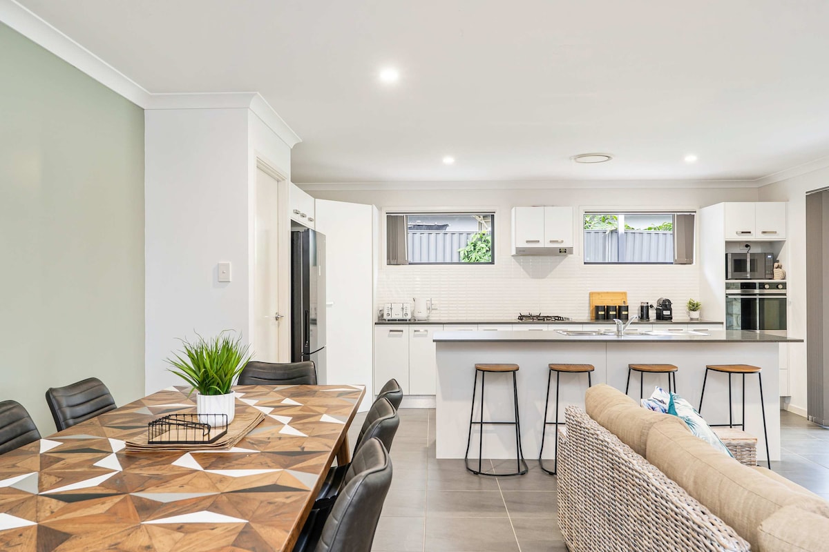 Beautifully styled modern 2‑storey townhouse with air‑conditioning in every room. Features 3 queen bedrooms with hotel‑quality linen, master with ensuite and huge bathroom. Includes 3 toilets, powder room with laundry, a well‑equipped kitchen, spacious lounge, high ceilings, 55” smart TV, unlimited Wi‑Fi. Private courtyard with umbrella seating and BBQ. Close to everything, comfortable and in a great location,perfect for a relaxing stay.