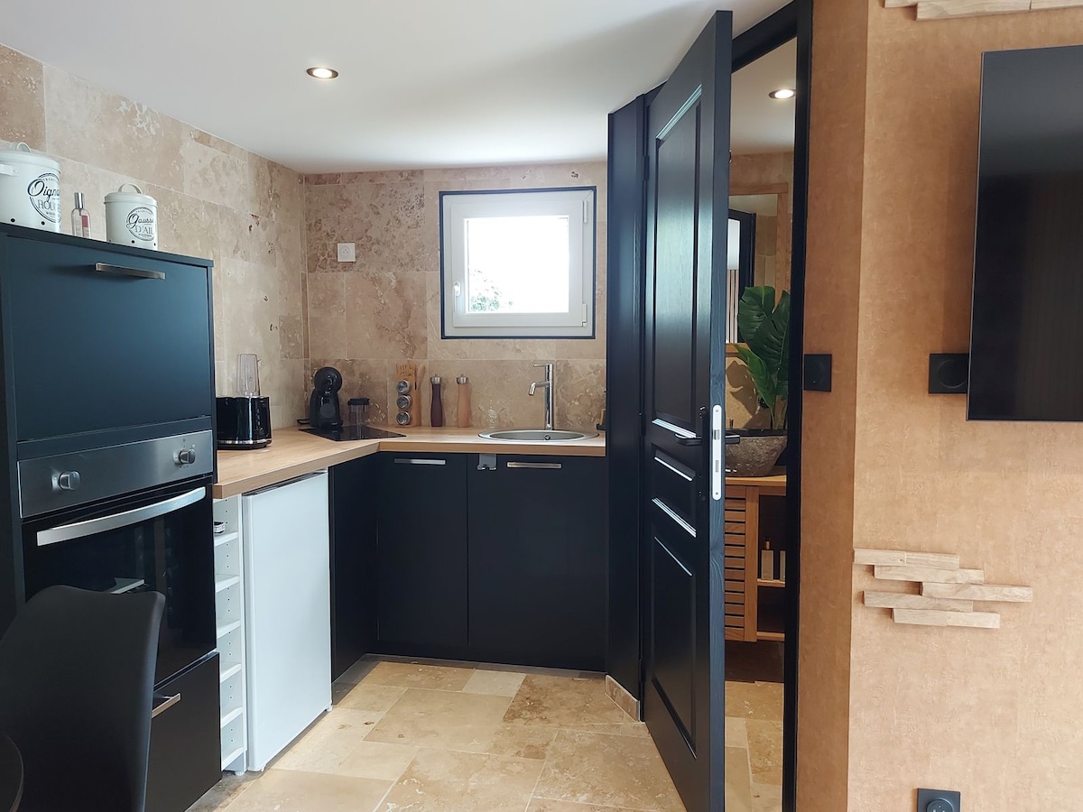 Welcome to this gem for a perfect stopover and total disconnection! Equipped and connected, you will be charmed by the warm and mineral atmosphere of the place, with woody notes, for a cozy and industrial atmosphere. Its jacuzzi with water and light effects will bring you absolute relaxation all year round. Try the sensory and unique experience, in a cave atmosphere, of the tropical shower, where stone, water and vegetation come together for a captivating feeling of well-being.