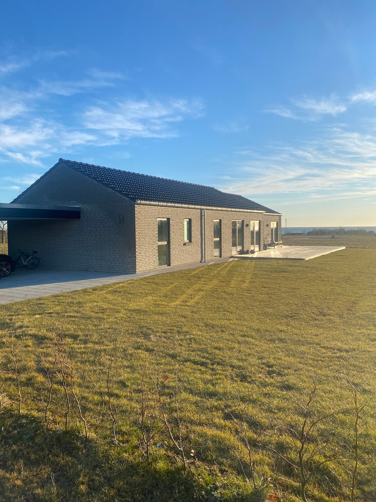 Well-designed new construction from 2020. The newly built house is only 800 meters from a beautiful child-friendly sandy beach and a few hundred meters from the beautiful Sæbygård forest and idyllic Nellemann's garden. The house is located 42 km from Skagen, 50 km from Fårup Summerland, 50 km from Aalborg and 10 km from Frederikshavn. The house offers large bright rooms, 2 bathrooms - one with a bathtub and a large and open kitchen-living room. From the house there is access to a large south-facing wooden terrace as well as a garden.