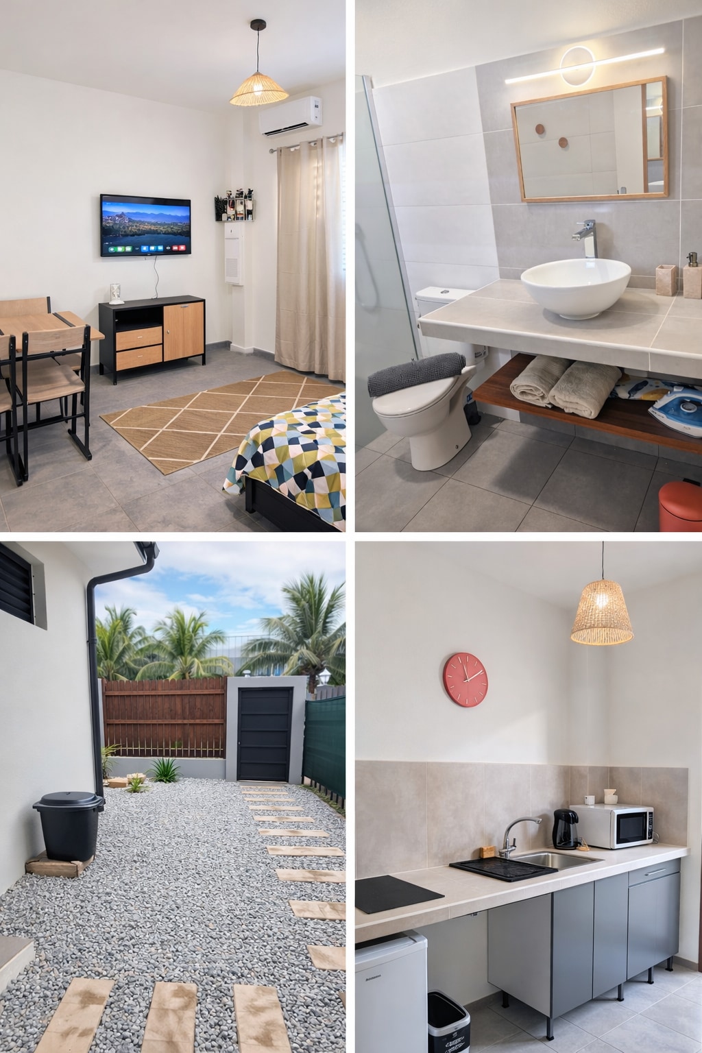 Au cœur de l’écoquartier de Rémire-Montjoly, à proximité de Cayenne 🌴, profitez d’un séjour confortable dans cet appartement décoré avec goût ✨ Situé dans une résidence sécurisée, il offre une piscine 🏊, des places de parking au pied de l’immeuble 🚗 et un accès rapide aux commerces 🛒, restaurants 🍽️ et services. Parfait pour vacanciers comme professionnels, au calme 🌿 et proche de tout.