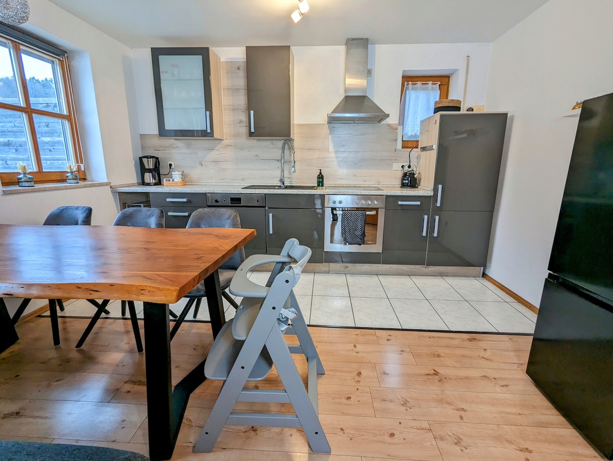 The exclusive granny apartment is located on the edge of the Bavarian Forest and allows a variety of excursion possibilities. Beautifully located in the border triangle (Germany-Austria-Czech Republic), there are countless activities to do. Distances: Passau 18 km, Stemp Wellness Resort 10 km, Pullman City Wild West Town 10 km, Bavarian Forest National Park 30 km, Schärding 30 km, Czech border 35 km. Close to restaurants and shopping.