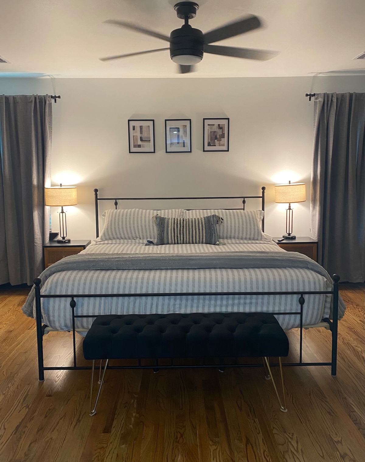 Check-in starting 4p Early check-in options: 3p $10 2p $15 1p $20 12p $25 Check-out by 11a Late check-out options: 12p $10 1p $15 2p $20 3p $25 Please set your guest count for correct pricing. PRIVATE ENTRY Pictures 2-9 - bedroom w/ Cali King sized bed, 65” smart TV, bathroom w/ 2 vanities, soaking tub w/ jacuzzi jets, walk-in shower, large walk-in closet (doubles as small room w/ twin bed - ask), are all privately your area. Other pics show common area