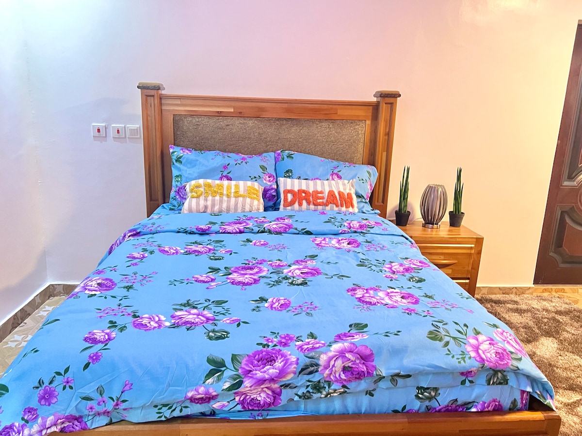 Welcome to Cozy Minimalist Apartment, just 20 minutes from the airport! Enjoy a fully equipped living room and kitchen, perfect for families, couples, friends, and solo travelers. Nearby attractions include Achimota Zoo, the Golf Center, and Achimota mall. Grocery stores and dining options are a short stroll away. Stay connected with reliable WiFi and enjoy Amazon Prime, Netflix, and cable channels.