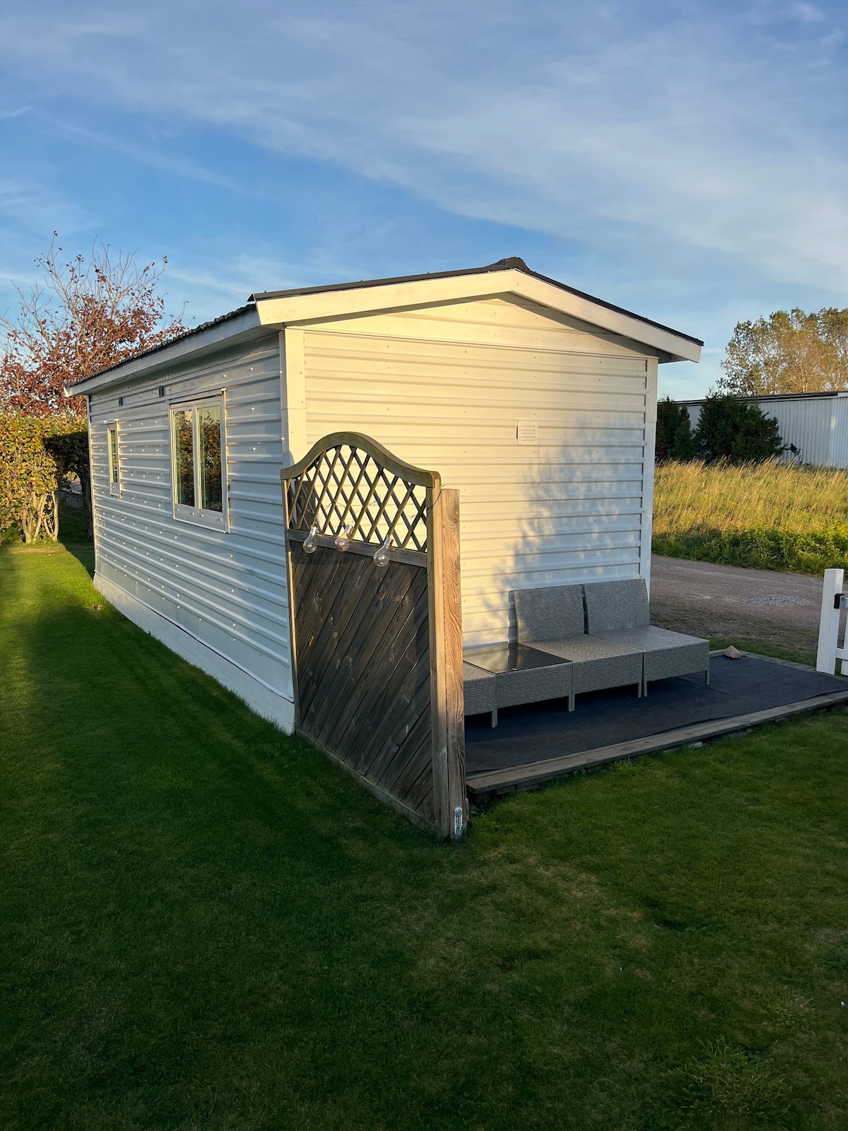 Welcome to our little paradise! In the corner of our garden we have a house that we rent out. It is near the ocean and the beach in the old fishing village Träslövsläge. If you want to rent this house for a week or more from september-may, please send me a request for a discount! This little house (23 square meters) has its own cozy patio on the grass under the apple tree. Near buses, restaurant, ice cream bar and the beach (0,5 km). 6 km from downtown Varberg.