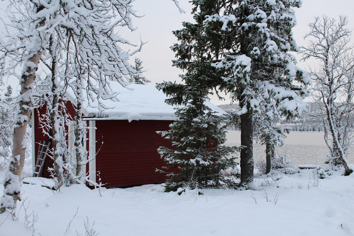 Welcome in our little cosy wooden cottage with amazing lake views! Slow wild living! Authentic Nordic simple but comfy timber cabin where we hope you feel right at home. Experience the silence, peace & beauty of Swedish Lapland. Enjoy walks in true nature,grilling, relaxing and those fabulous lake views! There is NO running water during winter (from October - end of May) so no shower & no hottub, we provide you with plenty of water in jerrycans.