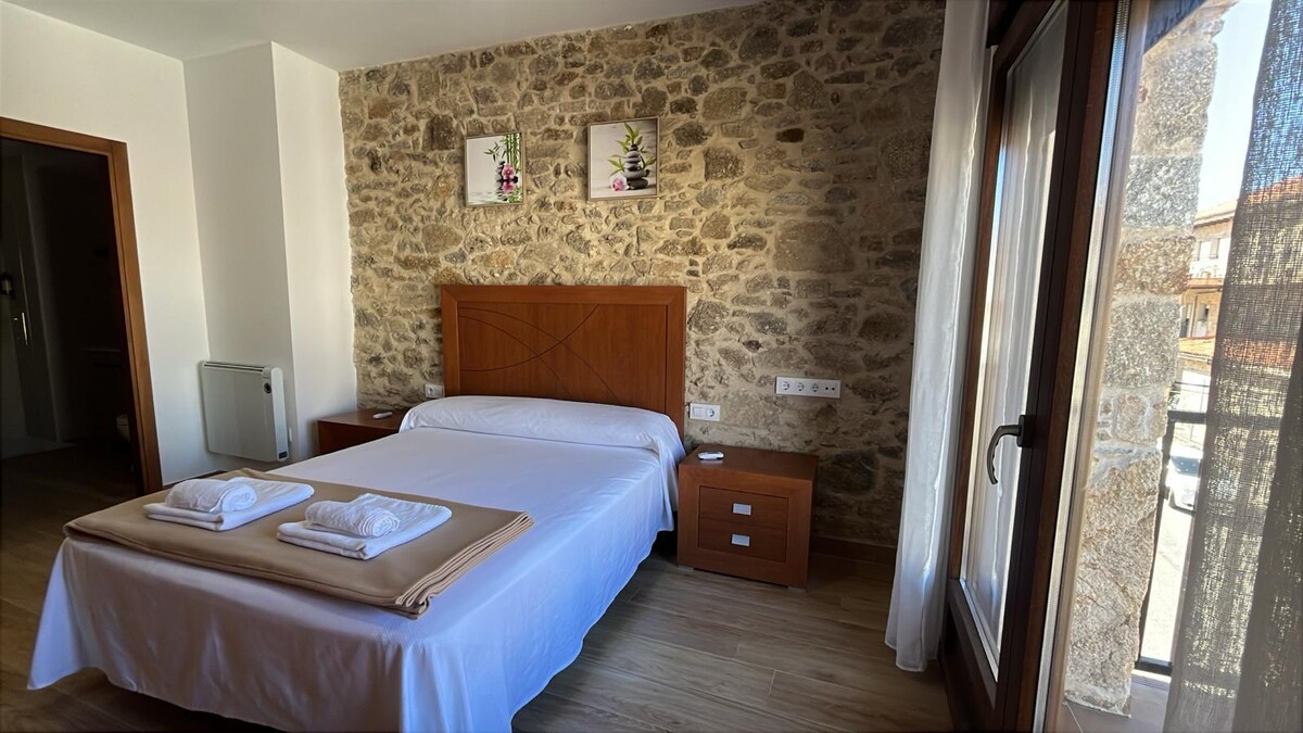 Studio for 2 people with private garage located in El Torno, overlooking the Jerte Valley. 20 km from Plasencia and 100 km from Trujillo and Cáceres. It has a kitchen-dining room with a washing machine, a ceramic hob, a refrigerator, a super-automatic coffee maker, a toaster, a microwave-grill, etc. Garage, free-use bicycles for guests. Fireplace, Wi-Fi, Smart TV with Netflix. Bedroom with a whirlpool bathtub. Bathroom with hairdryer and hair straightener plus amenities. . .