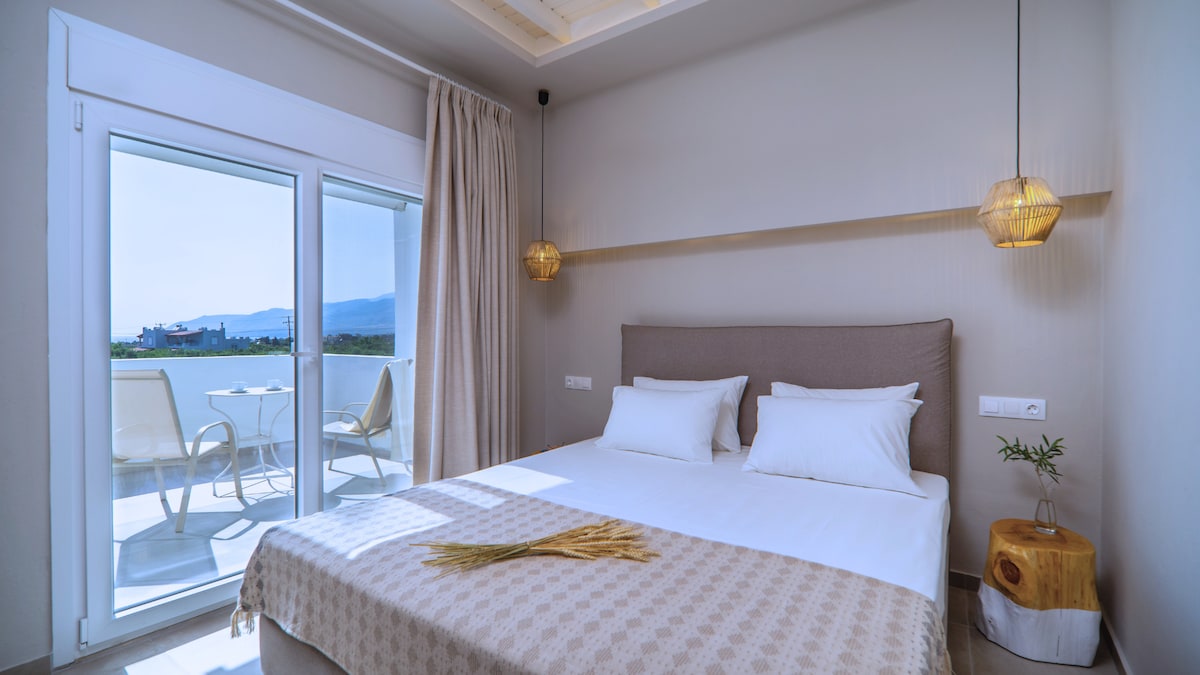 Villa Mayeia, a design-awarded & just 250m from Plakias Beach, this 2-bedroom villa blends minimalist luxury with bohemian charm, accommodating up to 5 guests. Each en-suite bedroom features king-size beds, premium mattresses, and stunning views. Enjoy a private heated for an additional fee pool, outdoor dining area with BBQ, and rooftop veranda overlooking the sea. The open-plan interior includes a fully equipped kitchen, Smart TV, and modern amenities. Perfect for families or friends.