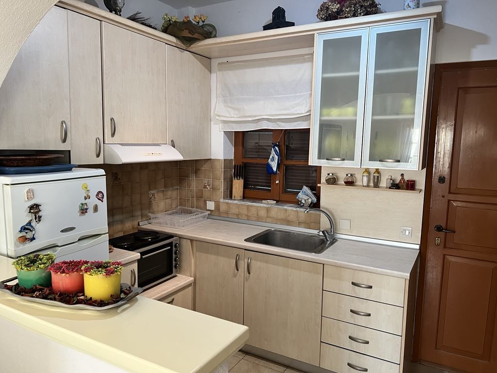 It concerns a 45 sq.m first floor,one bedroom nice apartment in front of the sea,with seaview balcony.Only 2 min walking from beach suitable for children and 8 min walking from the center of Kallikratia,where are shops, restaurants, night life, public transports and health facilities.Recently refurbished includes sunny living room with TV,WiFi,aircondition and two couches,a double bed bedroom with closet,bathroom with washing machine and fully equipped kitchen.There is private parking for a car
