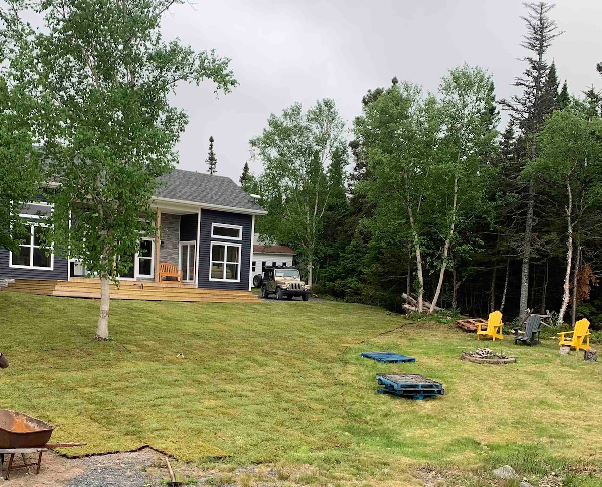 Note that no additional cleaning fees added and. 10 percent off for 5 nights or more Relax under the covered craftsman porch of this new custom designed beauty. The house checks all the boxes-ultimate privacy, large deck w/hot tub, vaulted ceilings with beams and a reading nook. Located in South River by Cupids/Brigus & a short walk from the ocean and a 7 min walk to the Nl Distillery. We are 45 mins west of St. John’s. The simple elegance of this house is refreshing for the soul