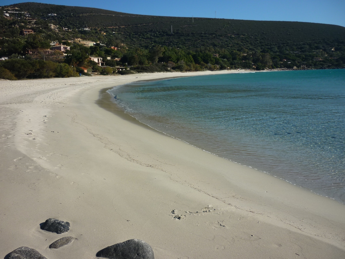 Relax in this peaceful space in the center of the bay of Genn'e e mari. Surrounded by Mediterranean vegetation, the house is a 5-minute walk from the beach and a few minutes from the shopping center complete with market, restaurant, pizzeria, bar. Arranged on one floor, comfortable and bright, it enjoys a beautiful view of the bay. The location allows you to visit the most beautiful beaches of the southeast coast of Sardinia. It is 15 minutes by car from Villasimius and 35 minutes from Cagliari.