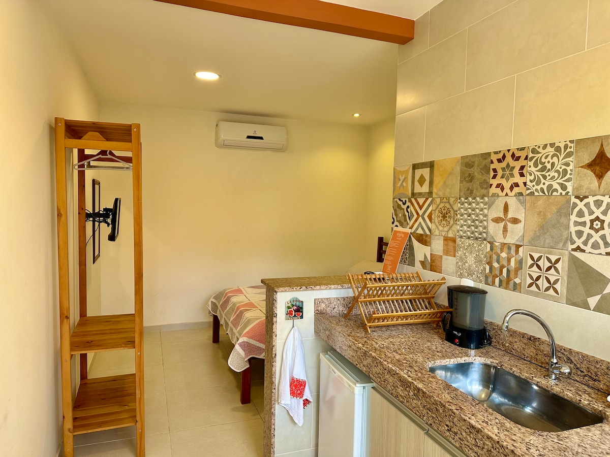 Venha se hospedar em nossa Suíte com Cozinha Completa e desfrute de nossa maravilhosa cidade. Pensando em lhe oferecer conforto e praticidade, dispomos de quarto completo com cozinha completa e banheiro privativo. Oferecemos roupas de cama e banho. Estamos localizados à 700 metros da Praia Brava além de 1,1km do centro de Búzios e a menos de 600m da Orla Brigitte Bardot.