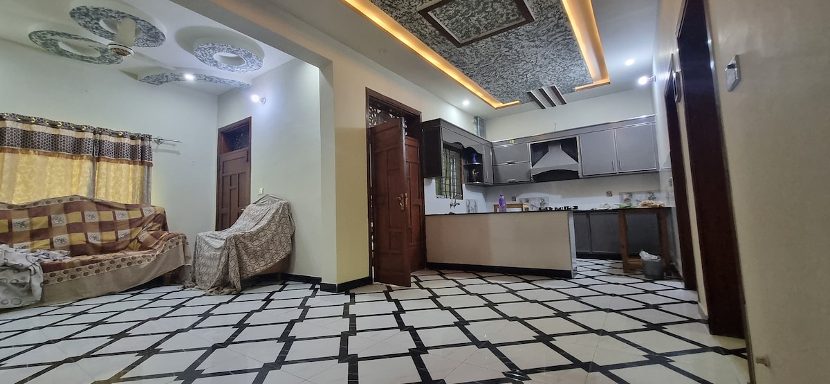 it is a luxry apartment with guest room. a family of 4 can stay easikly, It has all the modern facilities and is located on turbela road , Islamabad and peshawer is 45 minutes driving. fishing and sight seeing Guest can enjoy country living and as this is located next to marriage hall and shopping plaza you will enjoy a tradional marriage meal without any charge, Go to fishing the local people will take to sind river which is close by, or visit tarbela dam which is 6 miles away.