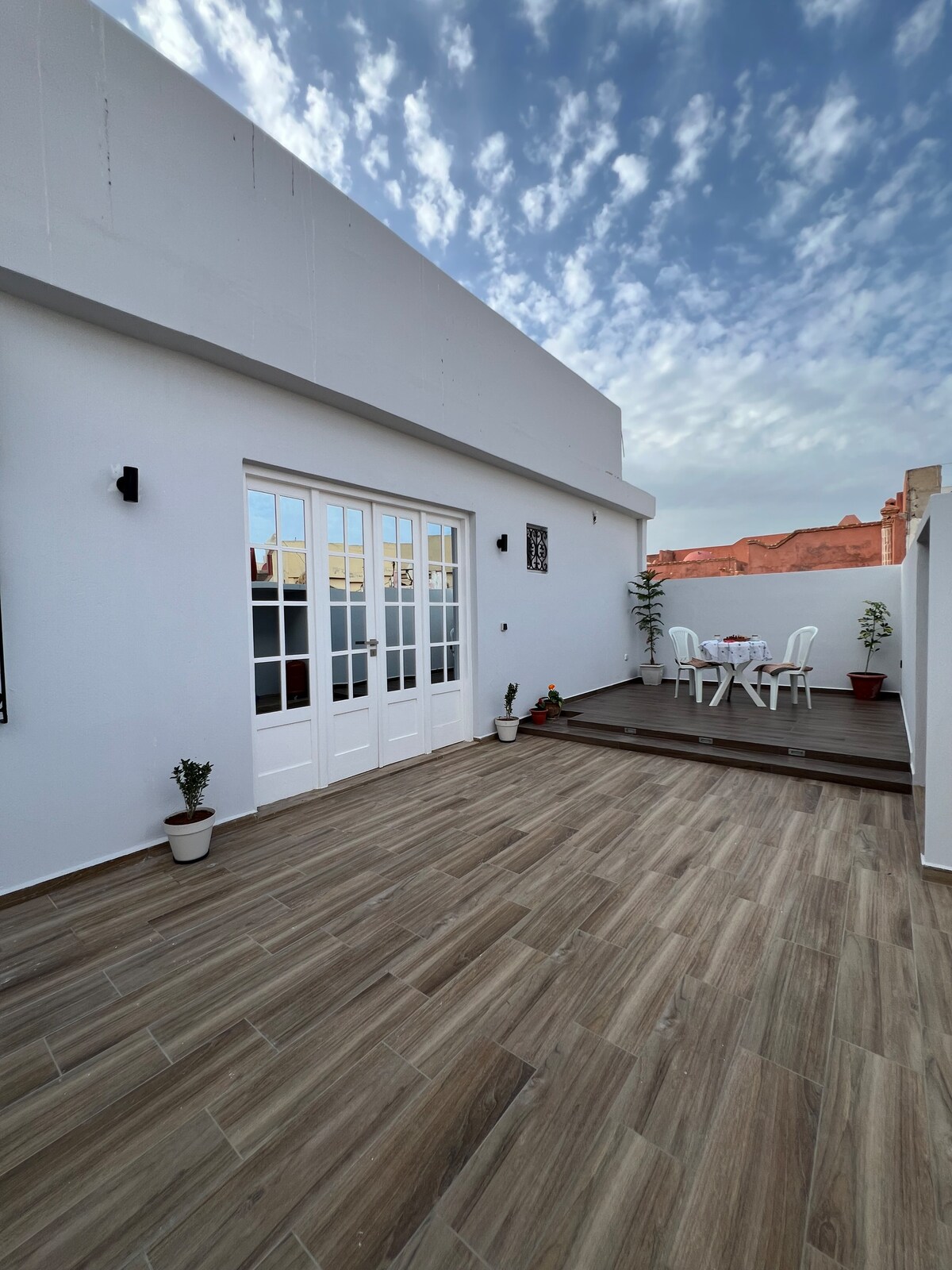 Ce logement unique, à l'entrée de la Médina, est un des plus beaux appartements-terrasse d'Essaouira ! Le dernier étage et le toit terrasse privatif sont situés au plus haut du quartier du Méchouar (maison bâtie en 1835) ! Ce "loft" de 140m² est aujourd'hui à la disposition des voyageurs privilégiés qui le réserveront. Terrasse aménagée & vue panoramique à 360° proche de tous les sites et commodités, ce qui facilite la planification de votre visite d'Essaouira.