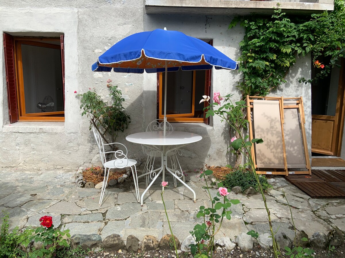 Charming studio on the ground floor of a Savoyard house. The listing is located in a cul-de-sac with little traffic. The sunny terrace faces south, overlooking the large garden of the house. Nestled in the heart of the mountains and lakes, you will discover a multitude of outdoor activities. Please note that we do not accept dogs, even small ones. Thank you for understanding.
