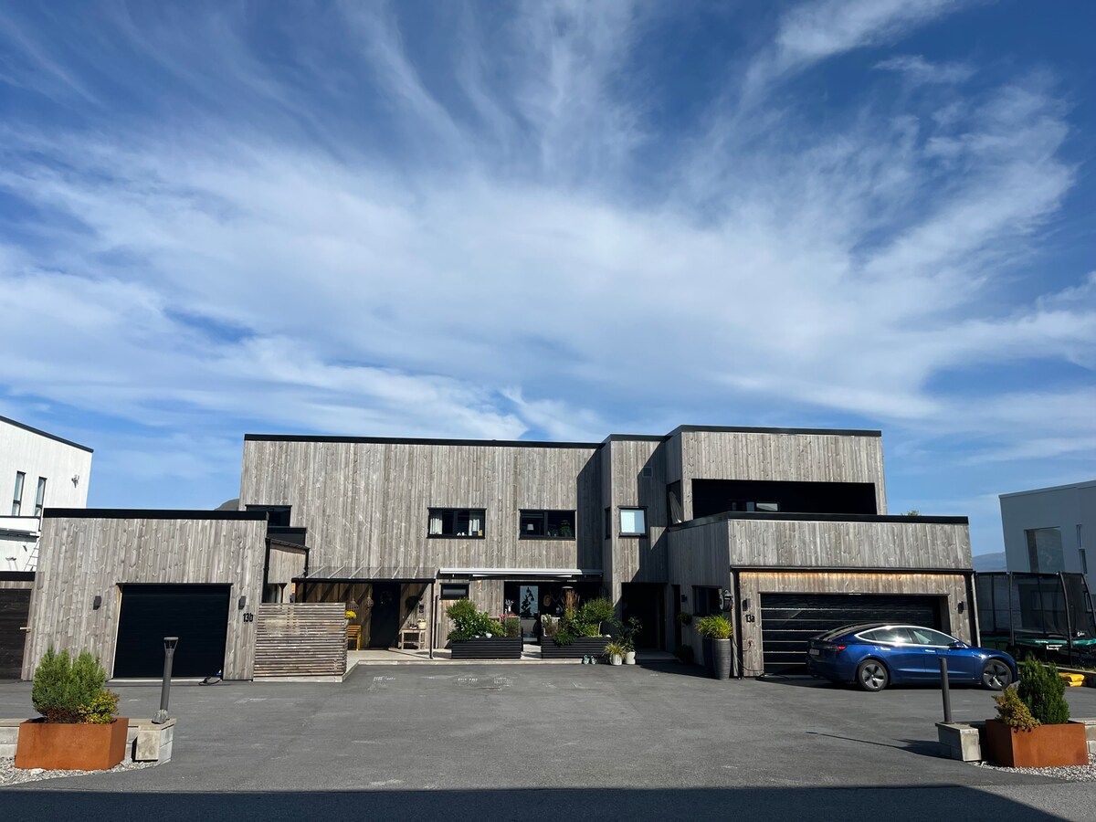 Modern and spacious detached house from 2018 with panoramic views of fjords and mountains. The house has large windows, open living room/kitchen solution and patio with evening sun. Located in a quiet and family-friendly area with a short distance to hiking trails, lakes, mountains and swimming areas. Perfect base for both relaxation and nature experiences – only 10 min from Ålesund city center and the airport