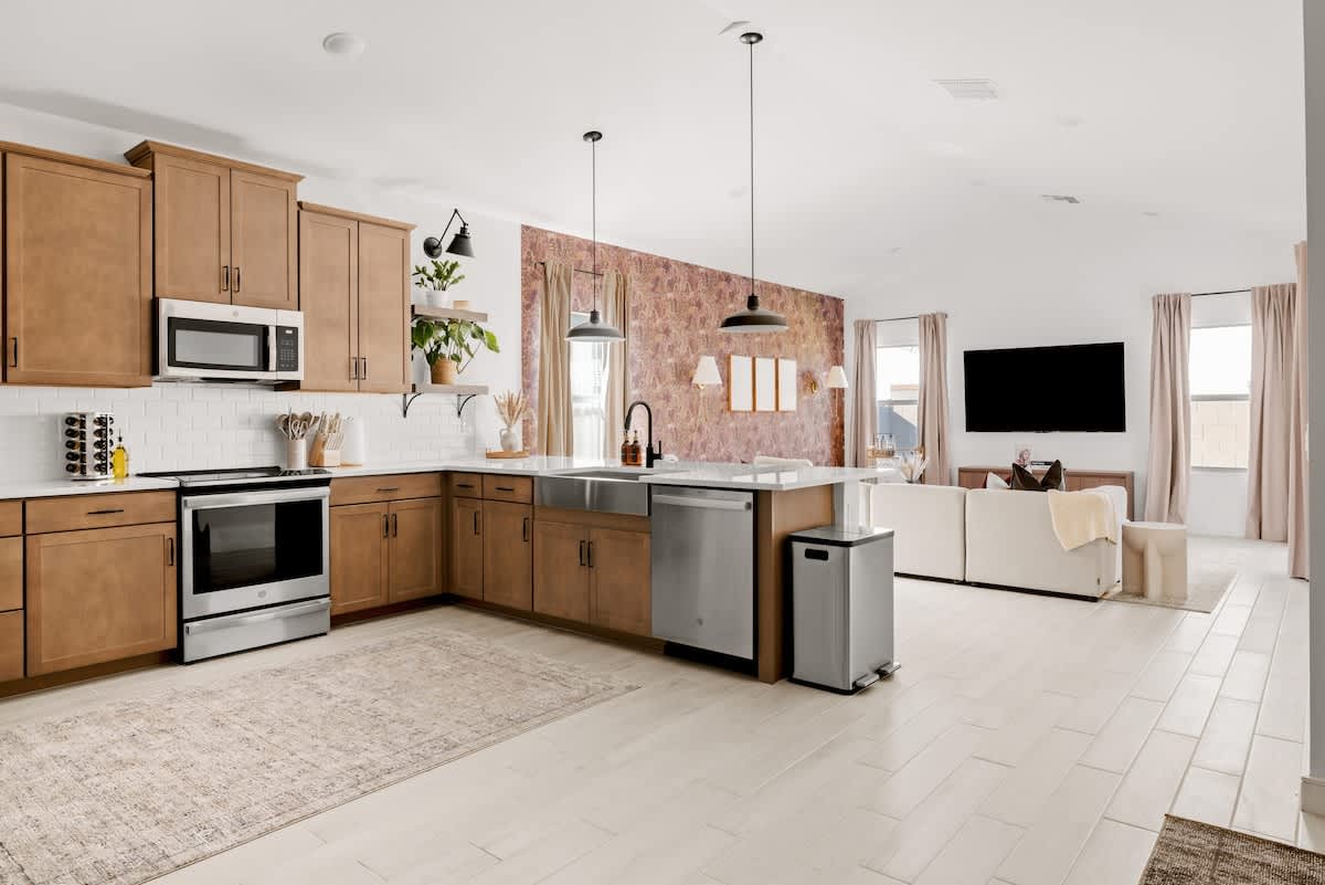Discover comfort in this fully updated 3-bedroom, 2.5-bath home, nestled in a secure gated community. The home boasts a warm and inviting atmosphere, premium finishes, televisions and the fastest internet. Step outside and enjoy the pool right across the street. This home places you at the heart of the action—less than a mile from State Farm Stadium, the Entertainment District, Desert Diamond Arena and Casino. Whether you're here for a game, a concert, spring training or just a weekend getaway.