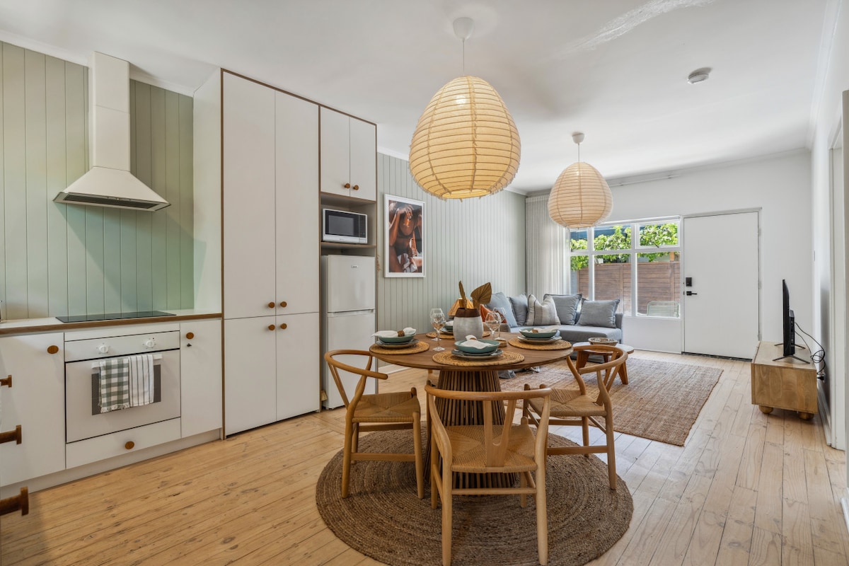 Step into seaside elegance! Just 2 minutes from Glenelg Beach, this stylish Art Deco apartment blends timeless charm with modern luxury — Miele kitchen, cosy gas fire, and breezy coastal vibes. No cleaning fees (or hidden fees). In fact our 3 day, weekly or monthly discounts are generous. No stairs — just effortless comfort by the sea. Very close to Marion Shopping Centre and Mclaren Vale vineyards are just up the hill.
