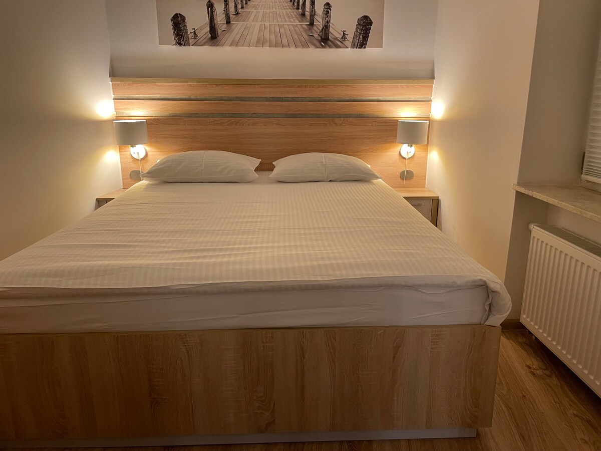 A modern, cozy, air-conditioned apartment in the heart of Gliwice - 100 m from the Market Square. The apartment is located on the first floor in a beautifully renovated tenement house from 1868. Amazing location. Luxurious equipment in the apartment makes this place special and unique. There are various restaurants and shops in the immediate vicinity.