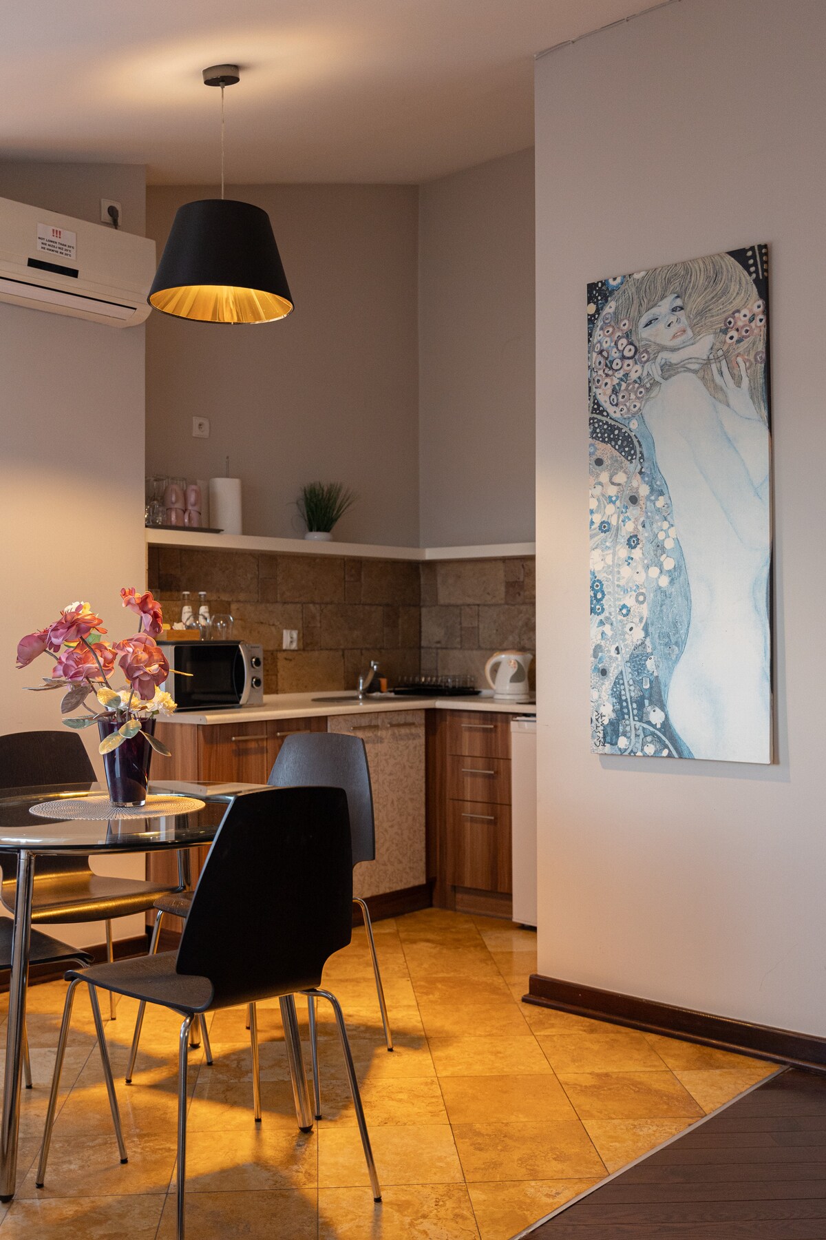 Our facility is an elegant and comfortable fully equipped apartment in the very center of Przemyśl, located on the first floor of a historic tenement house at 6 Juliusza Słowackiego Street. The apartment consists of a living room and a kitchenette with access to the balcony and bathroom. Guests can enjoy the view of one of the historic parts of the city from the balcony.