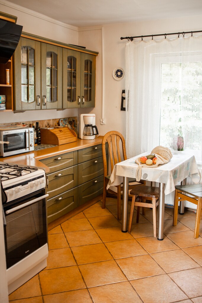 We invite you to our house with a garden. Downstairs, there is a living room with a fireplace, a dining room with a large table, a fully equipped kitchen, and a bathroom with a bathtub. In the attic there is one large room and a bathroom with a shower. The house is located in a quiet area, close to Lake Rusałka, 6 km from the center, 300 m to the bus stop. We provide bicycles. In the garden, you can relax on the terrace and have a barbecue. There is a sandbox and a playhouse for children. Parking for 2 cars. Wi-Fi available.