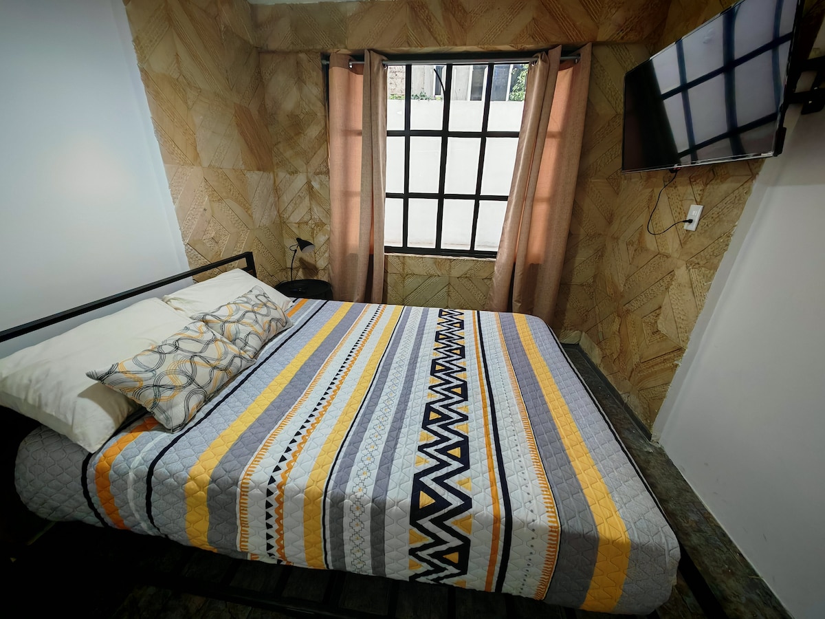 Cozy studio with separate entrance for 2 or 3 people, 1 double bed, 1 single bed, kitchen, bathroom, breakfast bar, and private terrace. SmartTV and high speed WiFi. 15 minutes from the airport. On a quiet, cozy street with easy access by car or public transport (4 blocks from the Balbuena metro). Great location, we are 10 minutes from the Palacio de lo Deportes, Autodromo Hermanos Rodriguez, Foro Sol, TAPO bus terminal. And a 20-minute drive to the Historic Center.
