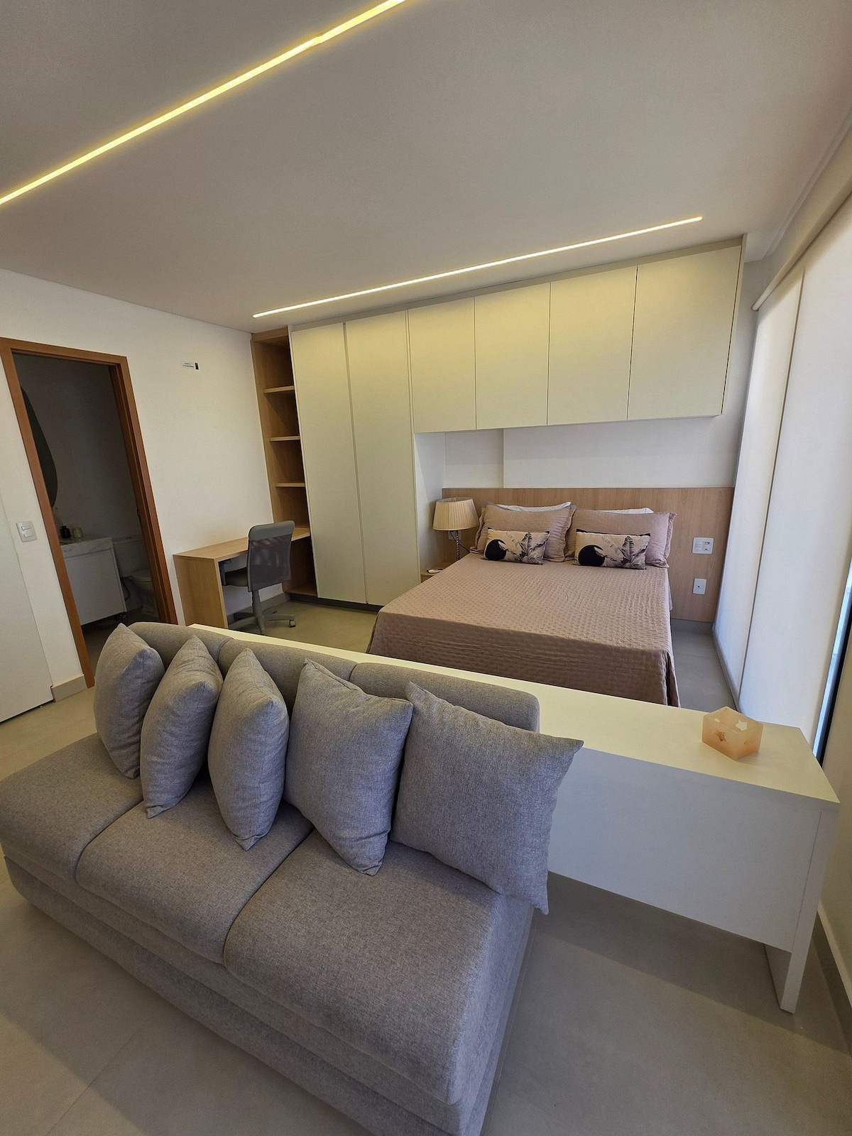 Este studio moderno e totalmente automatizado foi projetado para oferecer conforto, praticidade e elegância em Goiânia. Com design contemporâneo, o apartamento possui cama queen com enxoval premium, cozinha completa e os comandos por voz com Alexa trazem praticidade e inovação. O prédio oferece lazer de alto padrão, com piscina, academia e sauna, tudo para uma experiência completa e inesquecível.