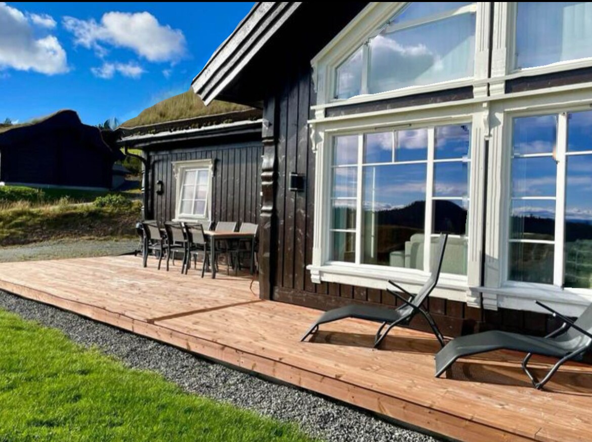 Romslig panoramahytte med stor, solrik terrasse og vidstrakt utsikt, midt i hjertet av vakre Hallingdal. Åpent og fritt, med umiddelbar nærhet til storslått og variert turterreng. Her venter høyfjellet med lyse sommerkvelder, fine badeplasser, klare fiskevann og et mangfold av aktiviteter og naturopplevelser – rett utenfor hyttedøren.