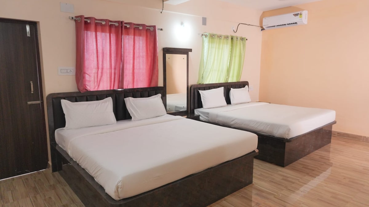 Enjoy easy temple and easy access to main road, with inhouse safe parking , low budget but well maintained AC rooms , cleaned twice daily.