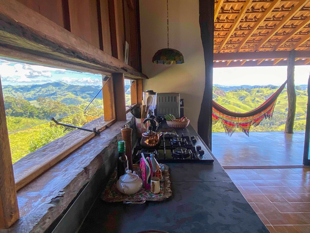 Come and enjoy this unique experience! An isolated cabin in nature and with the most impressive view of the famous Pedra do Baú. All this from inside our charming A-Frame chalet located in Gonçalves, southern Minas Gerais. A cabin that blends bold architecture with the charm and life of the countryside without losing the modernity and sophistication of the city. It is ideal for couples in love to live a unique sensory experience.