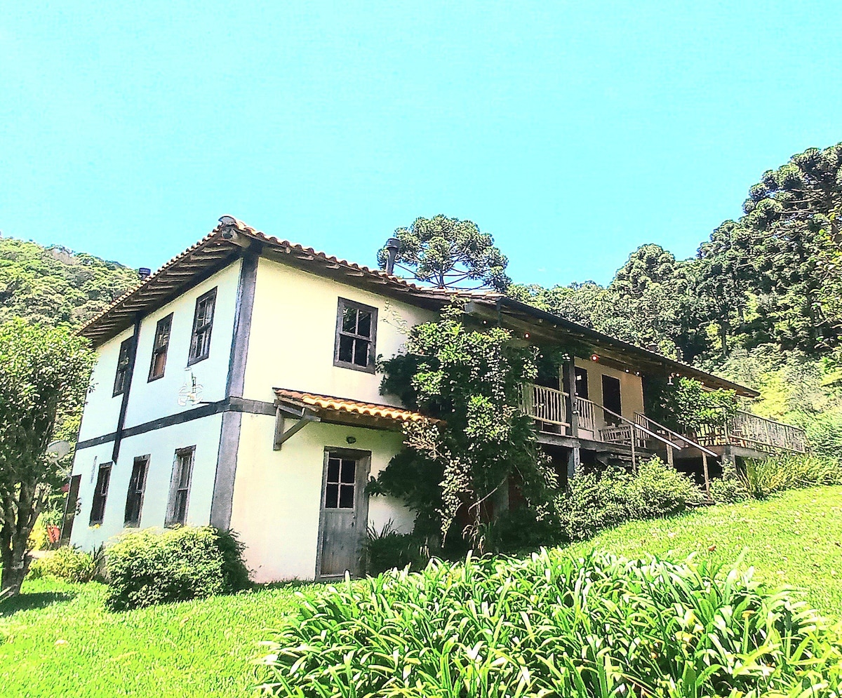 Casa de campo aconchegante, localizada a 1650m de altitude com vista privilegiada da serra da Mantiqueira, possui amplo gramado, plantação de oliveiras e mirtilo, horta, pomar e estábulo. Fica situada dentro de uma fazenda, espécie de condomínio rural com total segurança e privacidade. Situa-se no bairro dos Venancios, o mais antigo e bem conservado de Gonçalves.