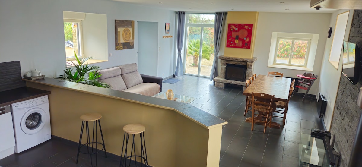 Charming 60 m² house with private terrace, fully equipped, part of an old farmhouse dating from 1793, where we also reside. The property is completely independent with independent access. You may cross our path in the garden, and why not leave with some plants as a souvenir! Comfortable, peaceful and bathed in light, this two-story house can accommodate up to 3 people. Perfect for a refreshing break!
