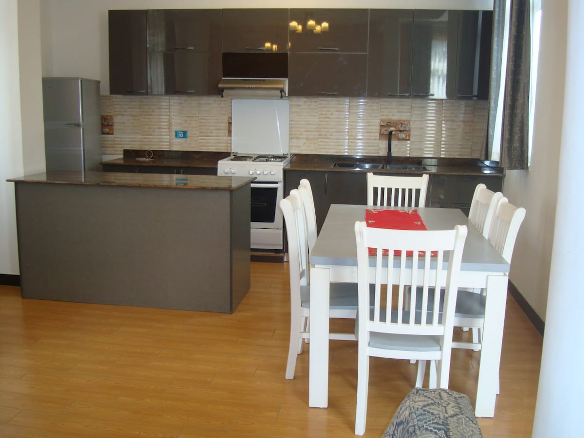 Luxurious apartment in Addis Ababa's Hayahulet area, featuring 2 bedrooms, 2 full bathrooms, a full kitchen, bar, living room with work area, dedicated parking, Wi-Fi, and backup generator. Perfect for business travelers or extended stays. Only 10 minutes from the airport and 5 from the train station.