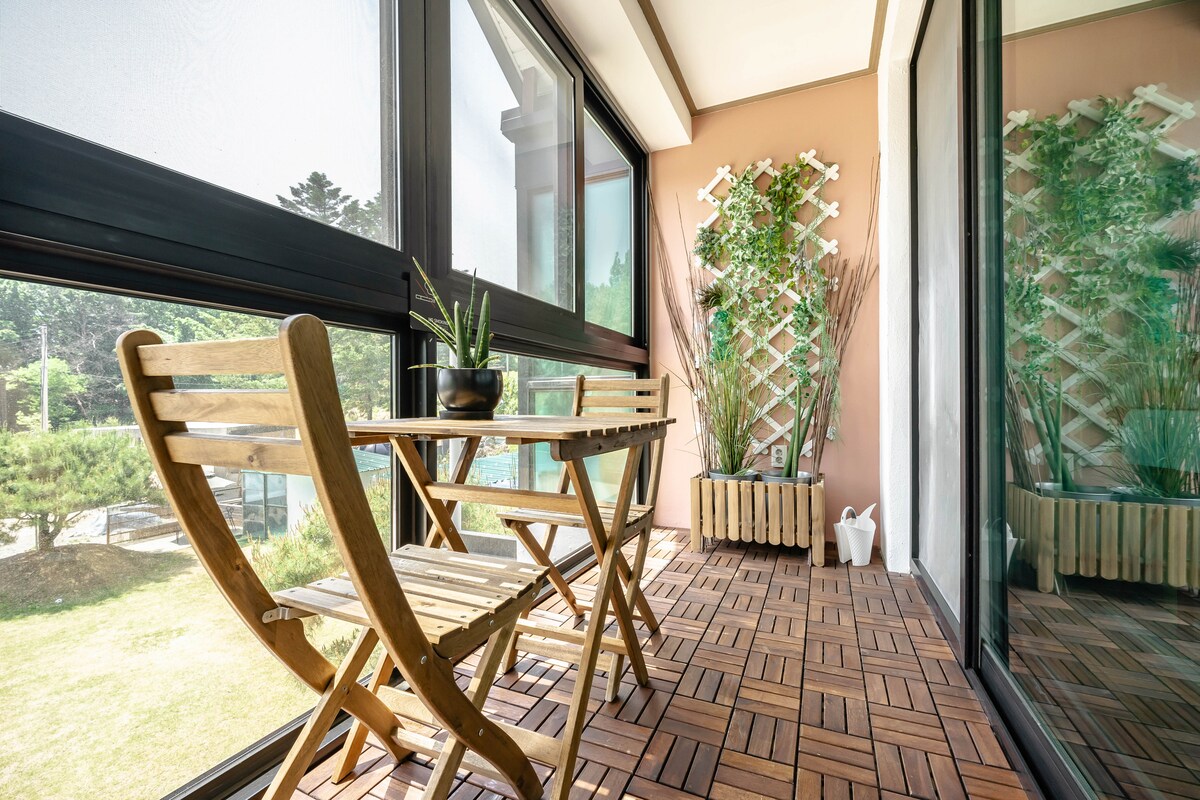 Behind you can see the pine forest of the back mountain, on the left side there is Yongju Seowon and a garden of about 200 pyeong, and in front you can see the quiet countryside. The garden is still unfinished, so we keep planting flowers and trees. On a clear day, you can see North Mountain in the distance, and you can enjoy beautiful flowers and trees according to the spring, summer, autumn, and winter seasons. It is a quiet accommodation, so you can rest comfortably. It is very independent and privacy is guaranteed without facing the front house next to the first floor. The interior is decorated with white and achromatic colors, preferring simple things. Small pets are allowed and 2 cushions and 1 food bowl are available. Beam projector and karaoke accompaniment There are two microphones, including a wireless microphone. The cloud bridge leading to the terrace and garden has been installed to make it more convenient to enjoy the garden and scenery. In the summer, there are two fans, coolers, dehumidifiers, and electric blankets. This is Deok-eun Pension, which is upgraded every day.