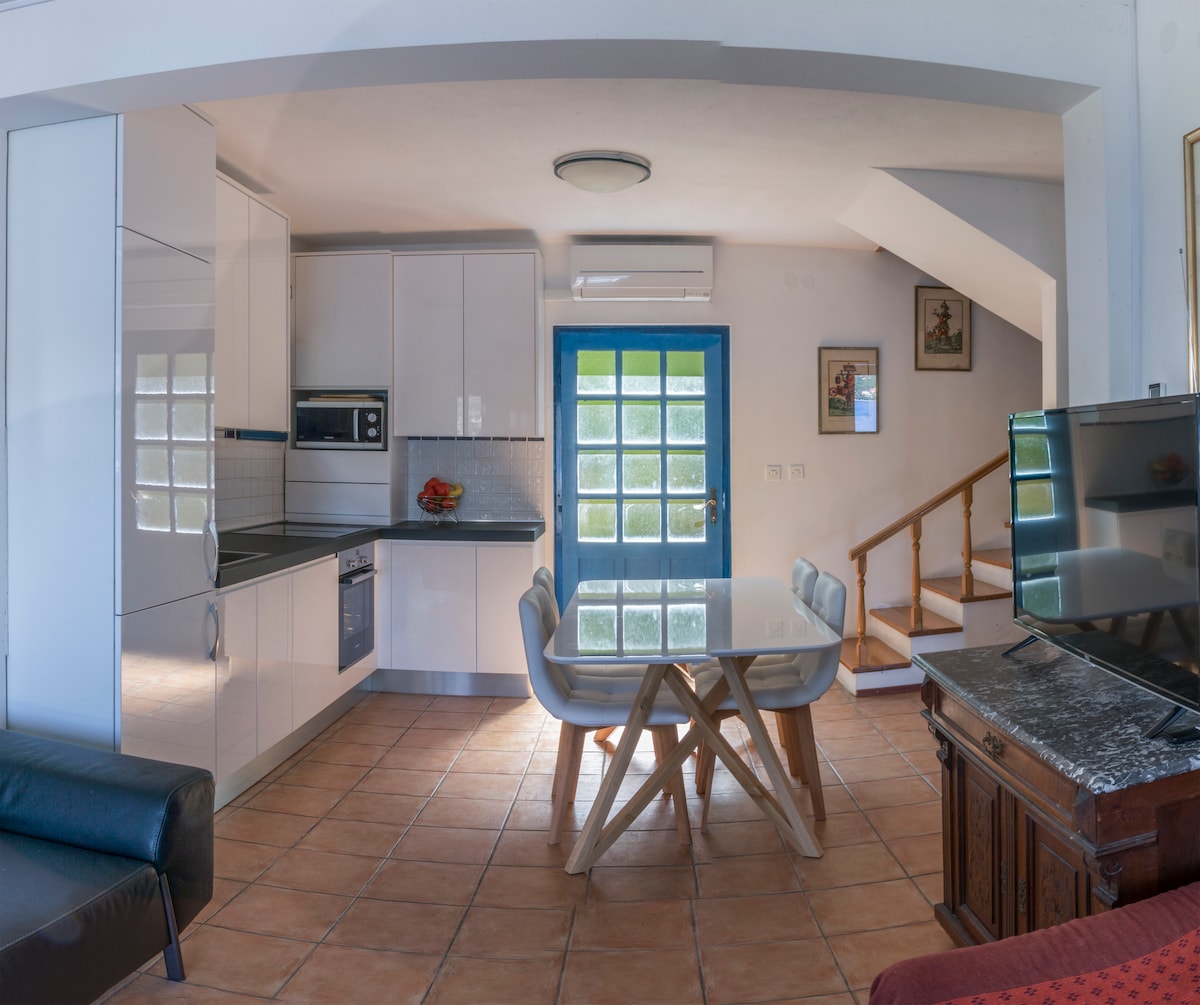 Villa MAR is located at the very center, less than 100m from the sea, beaches, promenade and shops. This small apartment on the first floor of the house perfect for two people (area of 22 m2). It consists of a sleeping area with king-sized bed and dining space, separated kitchen, bathroom and hallway. It is air-conditioned and facing north which means natural shadow and amazing views of the hill! Shared balcony and grill area. Perfect for budget short or longer stays for couple or students.