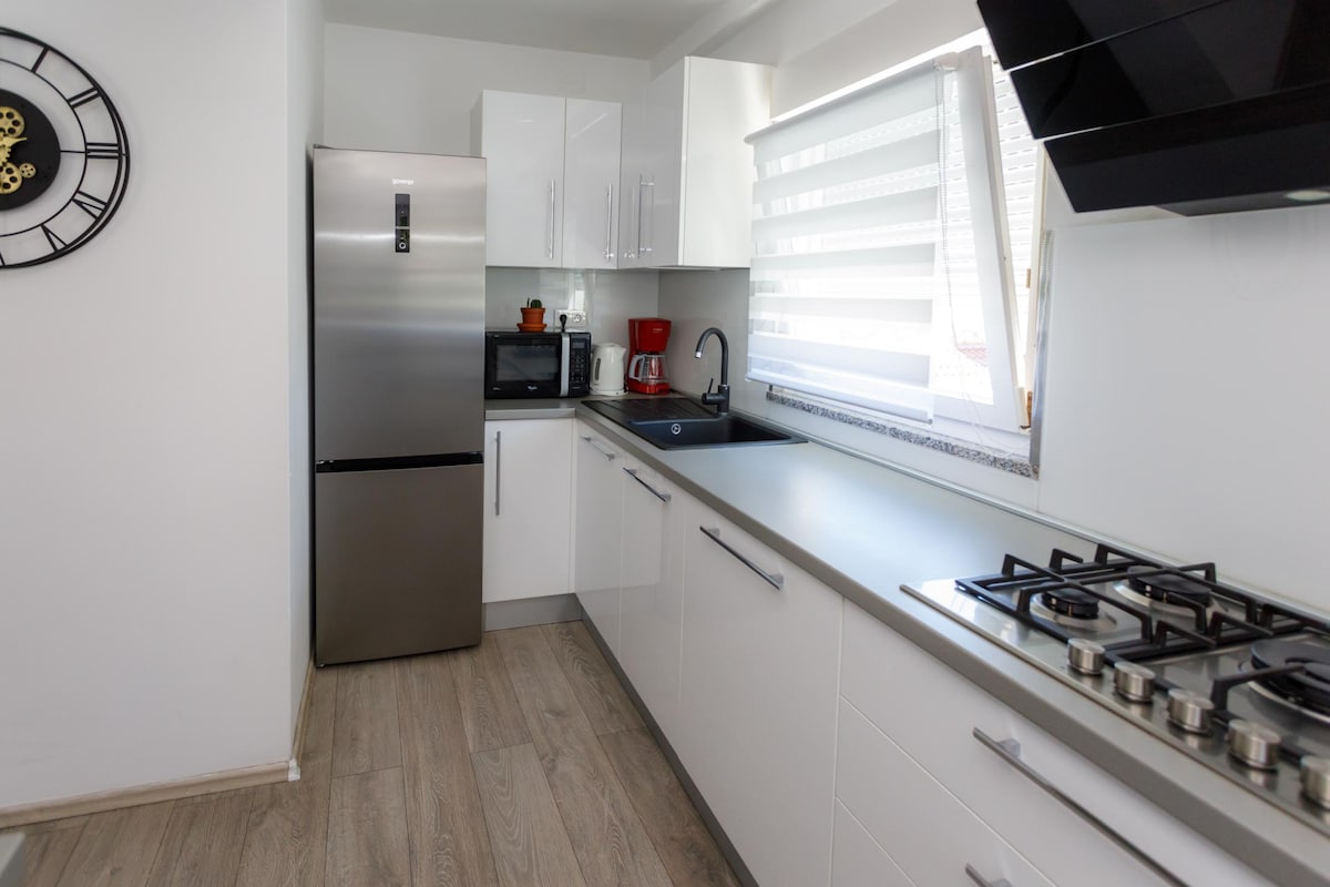 Elegant and modern apartment settled in peaceful and friendly neighborhood. Apartment is on the second floor, packed with two bedrooms , big balcony , bathroom, optimised kitchen , and colorful livingroom. This home unit is perfect for families with kids that would enjoy chilled environment. We have 2 cuddly dogs ( golden retriever and Croatian shepherd), guests can anytime play with them