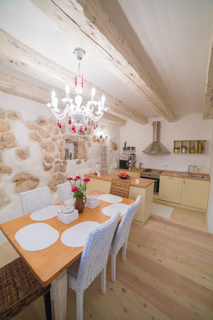 The House is recently fully renovated and equipped to satisfy all needs for relaxing holidays far away from noise and crowd. Vintage details are carefully select from our antique treasury as well as hand made stone vases and items at terrace and garden. On the ground floor there is a fully equipped kitchen, living room and dinning area with fireplace. Three comfort bedrooms and two bathrooms with washing mashine are on the first floor. NEW IN 2024: HOT TUBE