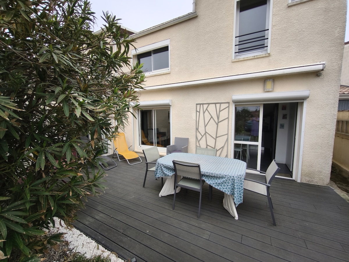 House with secure garden. Close to many shops and parks. Bus to Bordeaux within walking distance. Location 40 min from the Arcachon basin. Close to Bordeaux vineyards. The Accommodation. Accommodation composed of a large living room with open kitchen, two bedrooms, a bathroom, two toilets, a veranda, outdoor relaxation area. Enclosed grounds and parking. Check-in times may vary, please contact us by messaging.