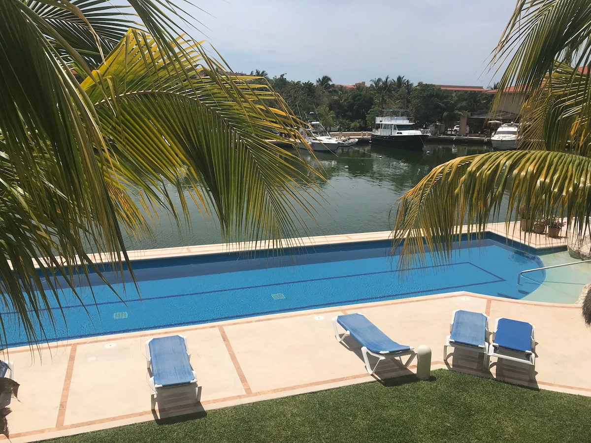 Just 1 hour away form Cancun's Airport, between Playa del Carmen and Tulum and just 20 minutes away from Xel-Ha and Xcaret. It has a beautiful Marina so 2 kayaks (with lifesavers) are included in the price. The Condo has a big terrace with views to the pool and the Marina which also has a jacuzzi (for 2). You can get to the beach by a beautiful 5 min walk. It also has Free WiFi. Restaurants and bars are just 400 m away.