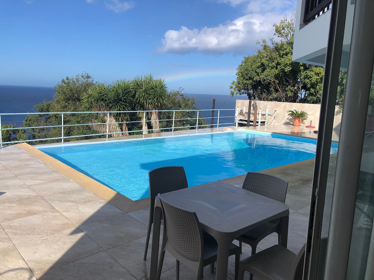 F2 cottage, spacious and serene, with shared pool and sea view terrace on the heights of Carbet. No air conditioning here, but there are fans and mosquito nets. Ideal for hikers in the North Caribbean.