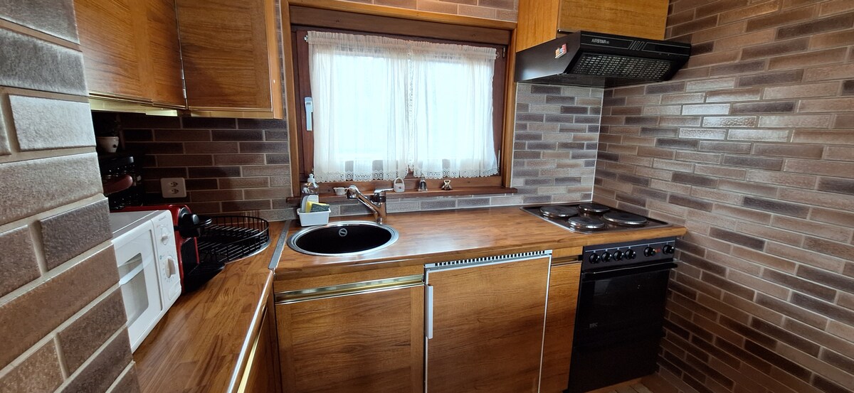 Hyttami 5 is a hytte, a chalet, a cottage. Completely renovated in 2020, this beautiful home is next to your hosts' home. In the middle of the orchards you will enjoy an exceptional view and the calm of the countryside while being close to the city, the lake and the mountains. The home was newly equipped in 2020. It has a terrace, a parking space and is fenced around the plot.