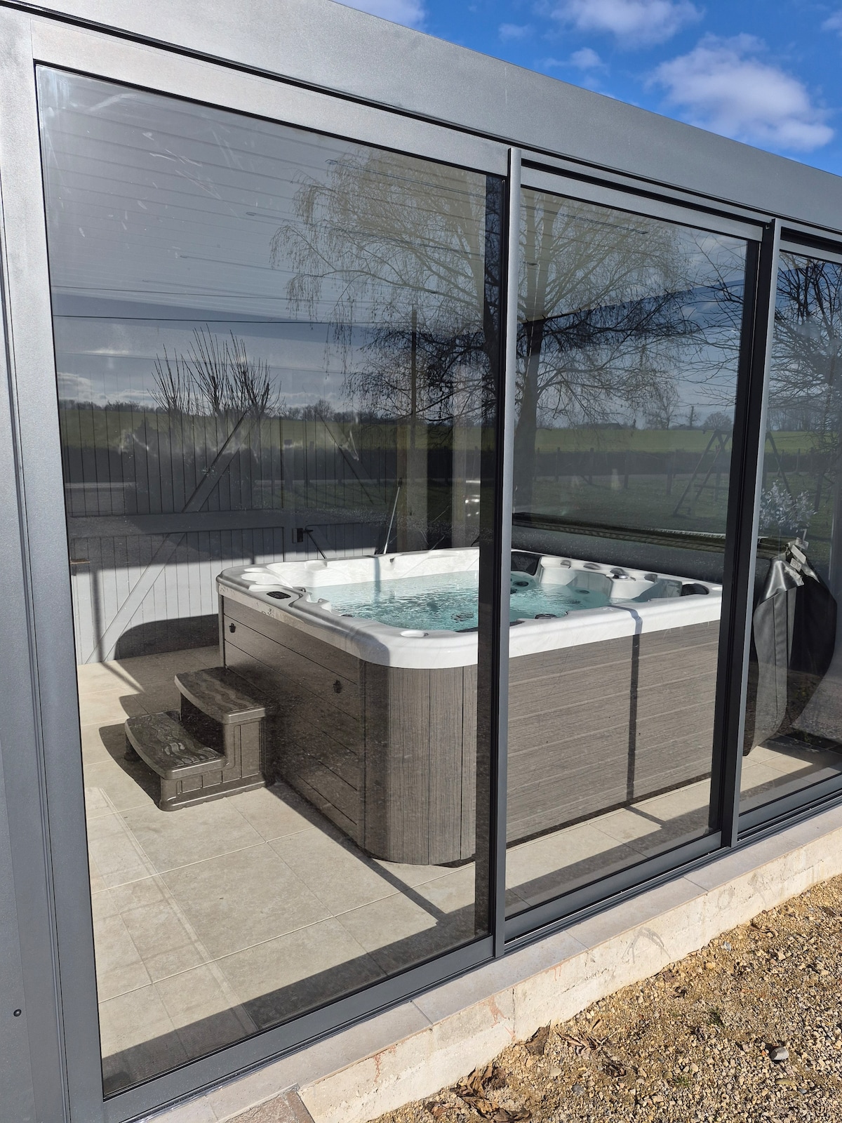 Private 6-seater hot tub 100 m2 accommodation including an equipped kitchen, living room with corner sofa bed, dining room, three bedrooms including one with private bathroom, additional bathroom with shower and bathtub, separate toilet. Garden with enclosed terrace, outdoor table and gas plancha. Lake access card available in the accommodation Parking is available for three vehicles on site. Cleaning, linens and towels included in the rental
