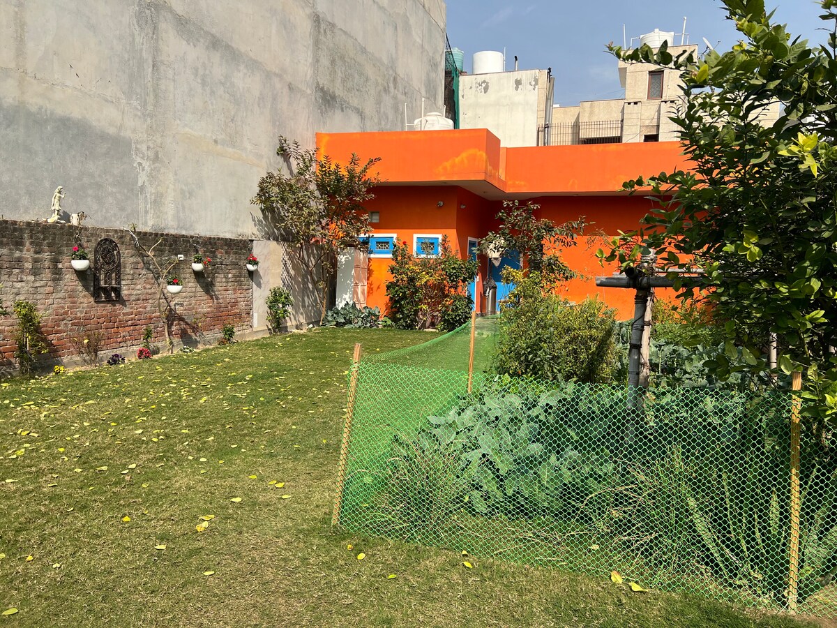 Unwind in our NCR retreat! Two spacious rooms, a fully equipped kitchen, and a sprawling 40m garden await you. Just 5 min walk to the metro, with 5 malls in 10 mins. Enjoy free parking and 24/7 security in our gated villa society. Immerse yourself in the harmonious blend of urban amenities and the soothing embrace of nature. Whether exploring the bustling city or rejuvenating in our verdant oasis, your stay promises a perfect balance of comfort and tranquility. Welcome to your peaceful escape!