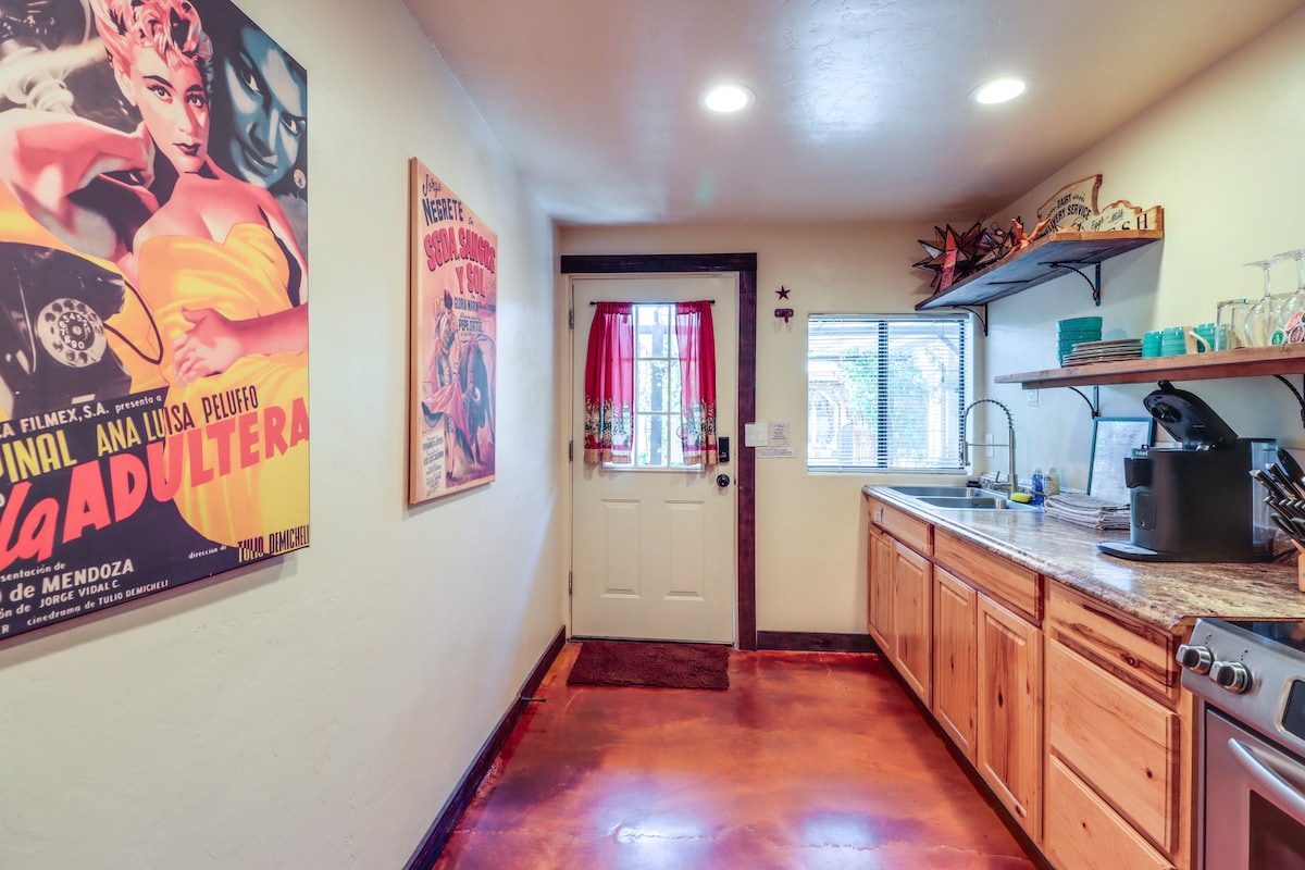 Contemporary Casita in Northeast Tucson, adjacent to Saguaro National Park East Located in the heart of the Sonoran Desert, this 1B/1B casita offers stunning mountain views and a peaceful desert setting. Just steps from SNP trails and a short drive to shops, restaurants and bars, it’s the perfect retreat The casita features a new, fully equipped kitchen, BBQ, and private patio with a telescope for stargazing. The cozy bedroom includes a queen-size bed and climate control for ultimate comfort