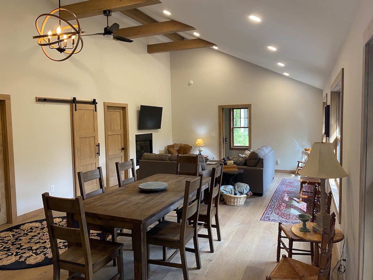 StarryPines Cottage is a 1920s resort bungalow that has been brought back to life. The house features reclaimed wood pieces and local furniture finds alongside mid century modern touches that give it a unique and stylish appearance. The cottage sits on a scenic property at the gateway to the Catskills. Natural Beauty and amenities make this a perfect retreat. Our family including a sweet lab mix live on property across the drive and share the greater yard. Dogs are welcome on approval.