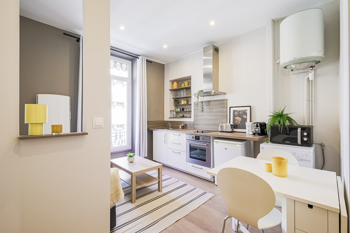 The Berriat Kstore, on the ground floor, is a prestigious 2-room apartment with hotel requirements and the motto: Excellence. Its amenities and quality furniture offer you a warm and welcoming environment. Discover the perfect blend of authentic charm and minimalist contemporary comfort. The building is located in an inner courtyard in the heart of Grenoble and is close to all amenities and public transport. 3-bedroom apartment, renovated, isolated and air-conditioned.