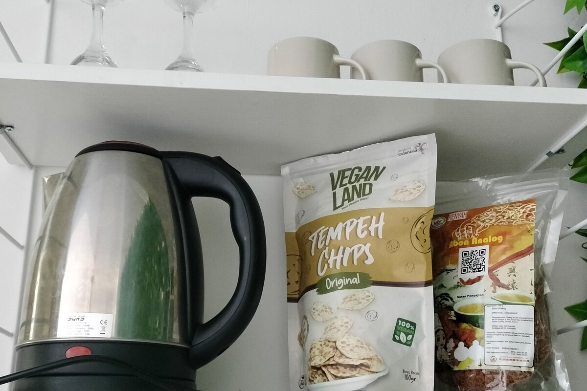 It's a nice little room tucked away in comfortable neighborhood and quiet street! Suitable for people who like to keep fresh in mind. Addition to this is a coffee shop with lush greenery.