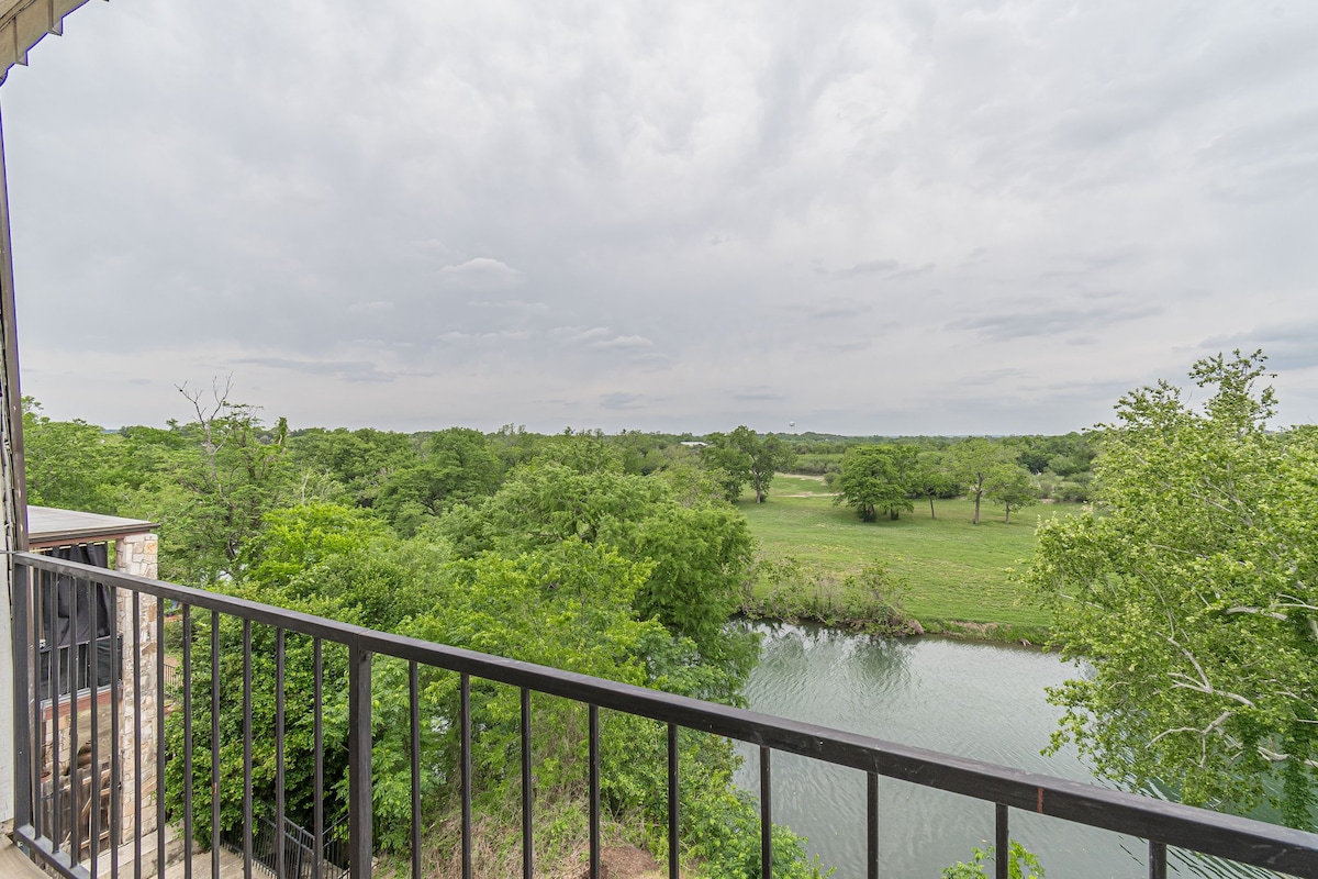 Come stay where the Guadalupe and Comal rivers meet! Tucked away in a secluded, gated community along the Guadalupe River, enjoy beautiful riverfront views on your own 2nd floor balcony. Centrally located, you are minutes from downtown, Schlitterbahn, Comal River outfitters, shopping, restaurants, and nightlife. Private access to the Guadalupe river. Enjoy fishing and swimming along the banks of the river or grill out and relax by the pool. Perfect for a family get away or an adult weekend!